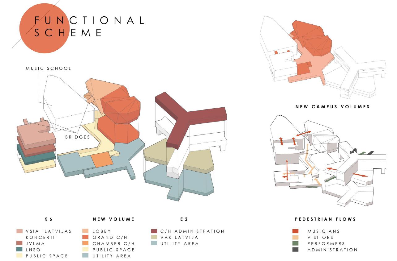 Tā Baltijas arhitektūras skolu un profesūras akadēmiskajā forumā secina Rīgas Tehniskās universitātes (RTU) Arhitektūras fakultātes jaunie arhitekti un mācībspēki, pārbaudot trīs iespējamos attīstības scenārijus – izbūvēt koncertzāli, nojaucot esošo modernisma ēku, daļēji to saglabājot un saglabājot pilnībā. Telpiskā analīze rāda, ka šajā vietā nav iespējams izbūvēt koncertzāli atbilstoši pilnai telpu programmai, iegūstot kvalitatīvu publisko ārtelpu. Novietnē nepietiek vietas reprezentablam priekšlaukumam un palīgfunkcijām, piemēram, autostāvvietai u.c. Būs nepieciešams izcirst kokus Kronvalda parkā, ievērojami tiks palielināts ēkas būvapjoms, vēl vairāk tiks deformētas vēsturiskās vides telpiskās proporcijas, kas ir raksturīgas Rīgas vēsturiskajam centram. Netiks nodrošināta arī iespēja nākotnē paplašināt koncertzāles kompleksu bez tālākas parka apbūvēšanas, secināts pētījumā.
