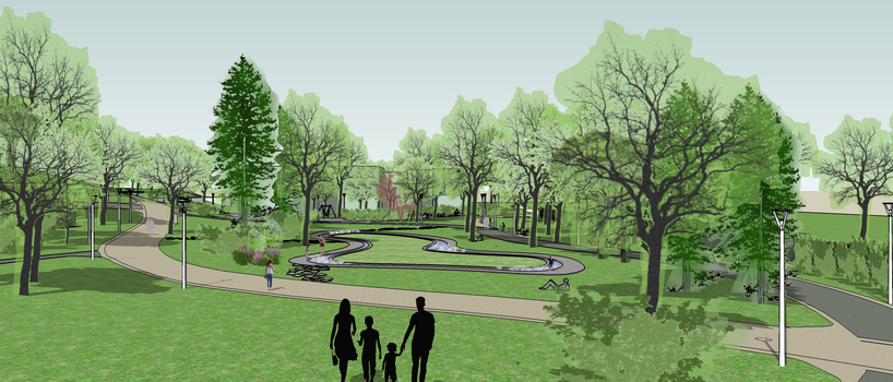 Izstrādājot parka pārbūves būvprojektu, parks tiks veidots kā mūsdienīgs apkaimes parks ar daudzveidīgām atpūtas iespējām dažādām iedzīvotāju vecuma grupām, vienlaikus saglabājot vēsturisko romantisma gaisotni. Pārbūves ietvaros paredzēta mākslīgo pilsdrupu un kādreizējās ūdenstilpnes funkcionalitātes risinājumu izstrāde, dārznieka mājas un labierīcību izbūve, brīvdabas amfiteātra un vietas vasaras kafejnīcai izbūve, bērnu un jauniešu aktīvās zonas izveide, tajā skaitā iezīmējot vietu veloparka, skeitparka izveidei Rīgas 28. vidusskolas tuvumā, kas jau tiks īstenots nākamo projektu ietvaros. Tāpat tiks nodrošināti labiekārtojuma elementi, vides pieejamības risinājumi (visiem sabiedrības locekļiem, t.sk. iespēju robežās – cilvēkiem ar īpašām vajadzībām un ģimenēm ar maziem bērniem). Īpaša uzmanība tiks pievērsta apstādījumu veidošanai un nodrošināšanai.