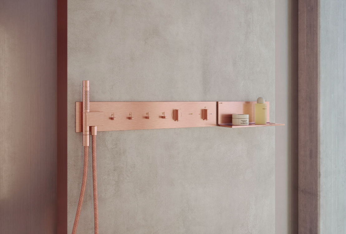 “AXOR ShowerComposition” ir minimizēts taisnstūrveida dizains, neliels dušas galvas dziļums un vertikālie paneļi, kas aizņem tikai 10 milimetrus no sienas. Ērti uzstādāmais dušas panelis piedāvā gan pilna spektra funkcionalitāti viena pamatkomplekta ietvaros, gan arī atsevišķos dušas moduļus iespējams salikt un sakārtot īpaši personalizētai dušas pieredzei.