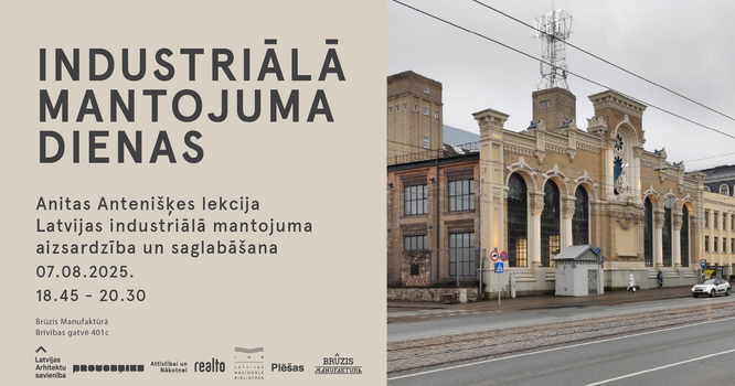 7. augustā plkst. 19.00 alus darītavā–restorānā «Brūzis Manufaktūra» notiks Industriālā mantojuma dienu ceturtās sezonas ceturtā lekcija «Latvijas industriālā mantojuma aizsardzība un saglabāšana», kuru vadīs arhitekte, pētniece Anita Antenišķe. Pasākumā tiks piedāvāts ieskats industriālā mantojuma aizsardzības un saglabāšanas procesos un pieejā to vēsturiskajā attīstībā no 20. gadsimta sākuma līdz mūsdienām.