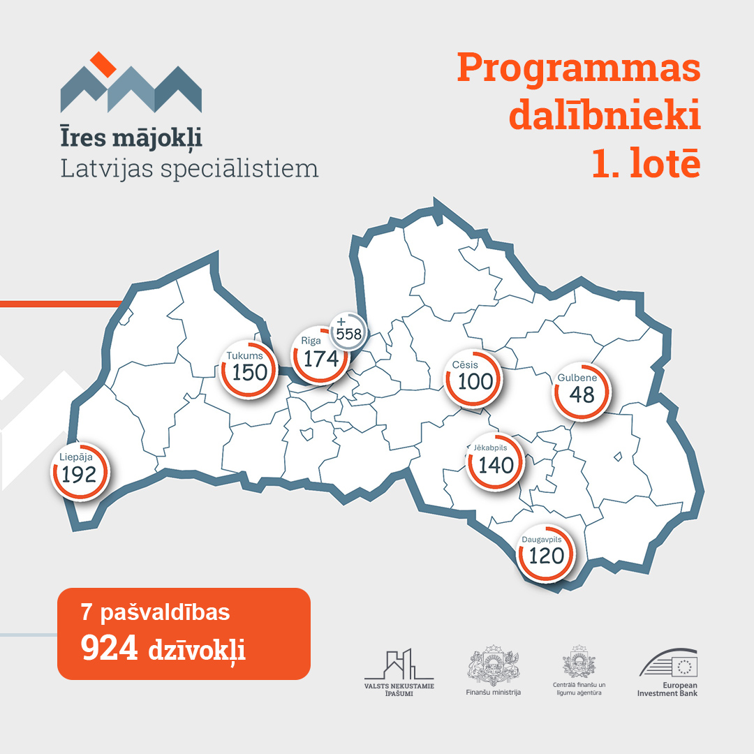 Jau ziņots, ka 2024. gadā VNĪ kā valsts pārstāvis programmas īstenošanai Latvijā parakstīja nodomu protokolu par pieejamu īres mājokļu izbūvi speciālistiem 13 Latvijas pilsētās. Par dalību programmā kopumā interesi izrādījušas 18 Latvijas pilsētas, par projekta īstenošanu 1. lotē lēmušas 7 pašvaldības.