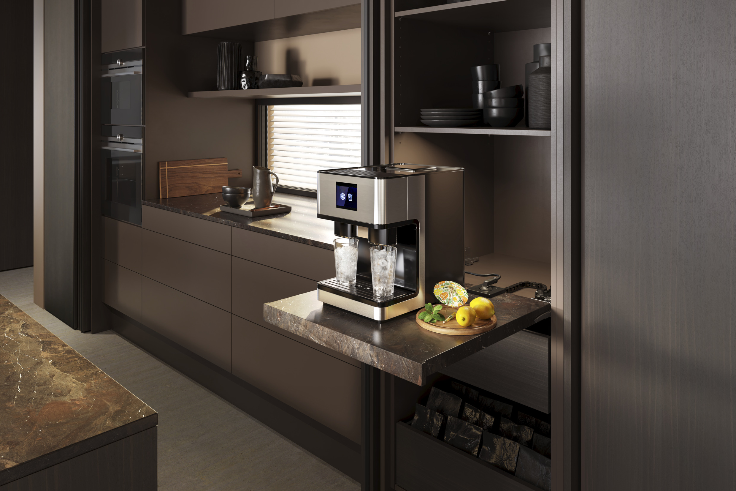 Ar AMPEROS AC aprīkotā izvelkamajā sistēmā var viegli paslēpt pat lielas un smagas ierīces. Kontaktligzda ērti izvietota plaukta pamatnē, paverot plašas iespējas pieslēgt dažādu sadzīves tehniku.