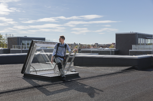 VELUX paplašina savu virsgaismas logu klāstu ar jaunu elektrisko jumta lūku, kas ir īpaši izstrādāta apkopes speciālistiem. Tā ir pieejama ar plakanu vai izliektu stikla virsmu trīs izmēros: 100x100 cm, 120x120 cm un 150x100 cm. Katrs variants ir pieejams ar vienkameras vai divkameru stikla paketi ar uzlabotu siltumizolāciju.
