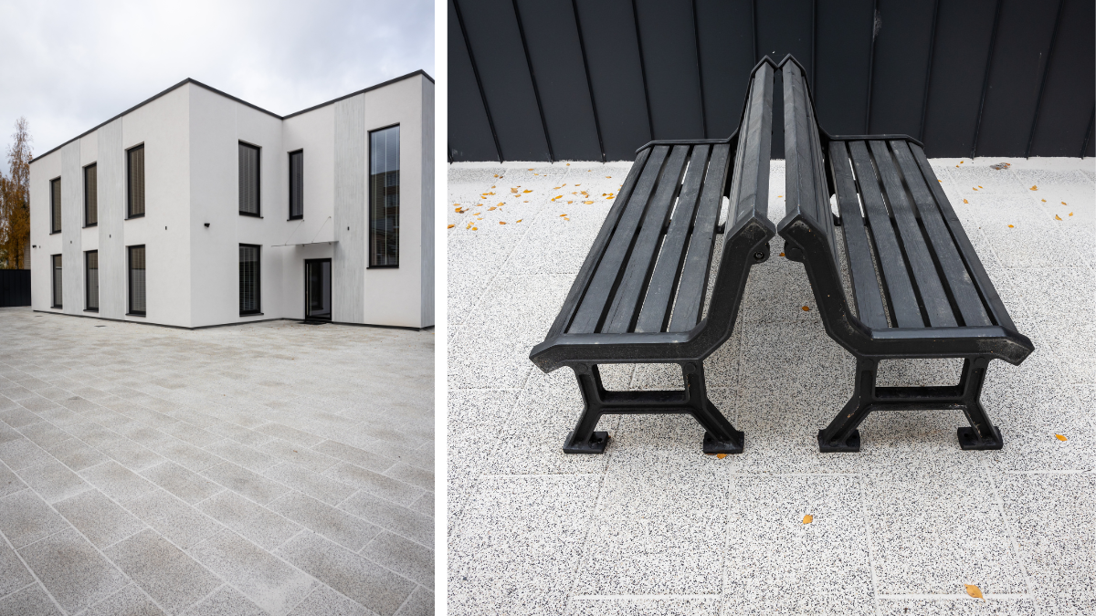 Hansa 8 Mega ir mūsdienīgs un stabils risinājums, kas lieliski piemērots gan privātmāju terasēm un celiņiem, gan publiskās ārtelpas labiekārtošanai. Tās lielais izmērs 750x375x80 mm nomierina telpu un ļauj izcelties apkārtējai videi. Taču īstā maģija slēpjas krāsas un faktūras plašajās iespējās. Apskatīsim trīs realizētus projektus, kas to lieliski pierāda.