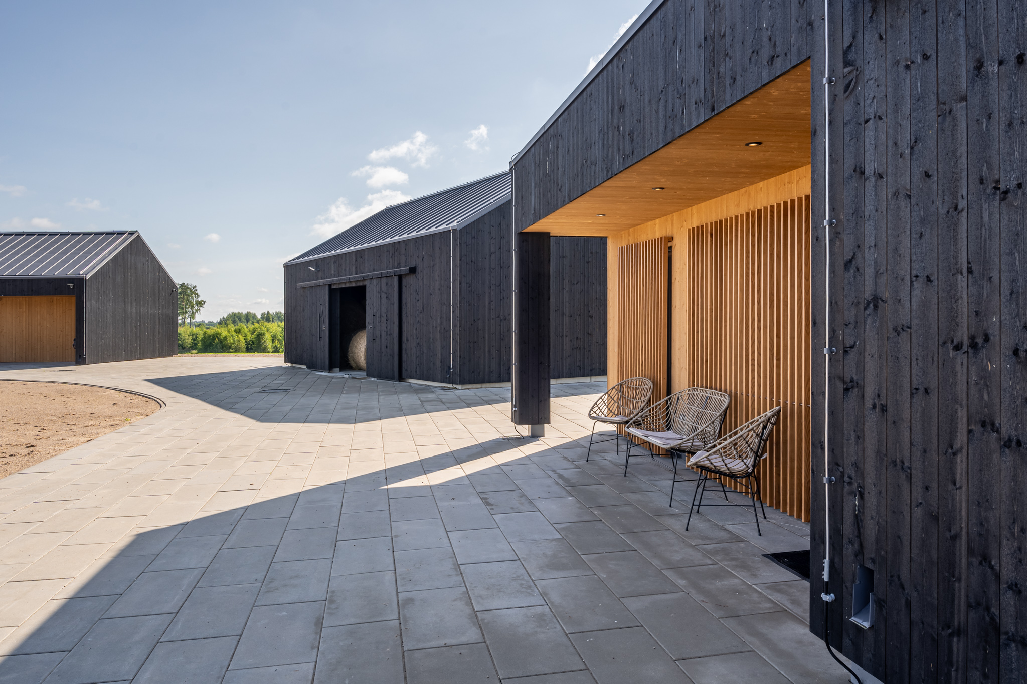 Dūrmuižā, kur ainava runā pati par sevi, izvēle bija Hansa 8 Mega plāksnes dabiskajā, pelēkajā tonī. Šis ir klasisks, bet pārsteidzoši iedarbīgs risinājums. Neitrālais pelēkais tonis kļūst par fonu, uz kura vēl izteiksmīgāk izcelsies sulīgais zāliena zaļums, apstādījumi un ēkas arhitektūras līnijas.