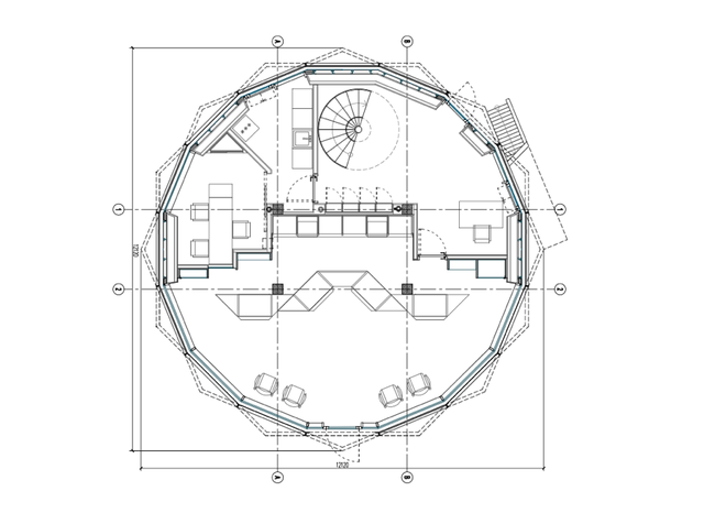 Būvapjoms novietots vienīgajā no maģistrālajām inženierkomunikācijām brīvajā vietā gruntsgabala vidusdaļā un tā apaļā kopforma pakārtota skvēra ikdienas pamatfunkcijai, kas darbojas kā aktīva gājēju tranzīta zona visos iespējamos virzienos. Jaunā skvēra celiņu sistēma veidota kā pieskares granīta plākšņu gredzenam, kas izveidots ap ēkas sešpadsmitstūri.